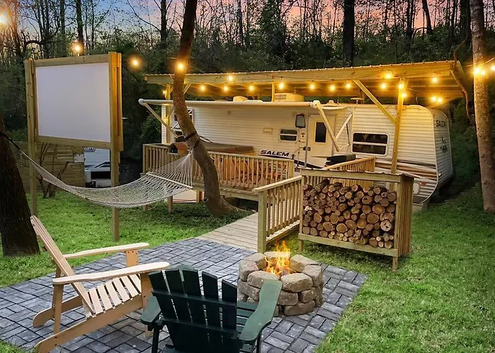 Ramblin Rose Camper - Theater - Hot-Tub - Fire Pit Villa Jonesville ligt binnen 10 minuten met de auto van First Baptist Church en nodigt gasten uit om te genieten van een zonneterras. Dit vakantiehuis biedt gasten een ontspannende ervaring met een bubbelbad.
